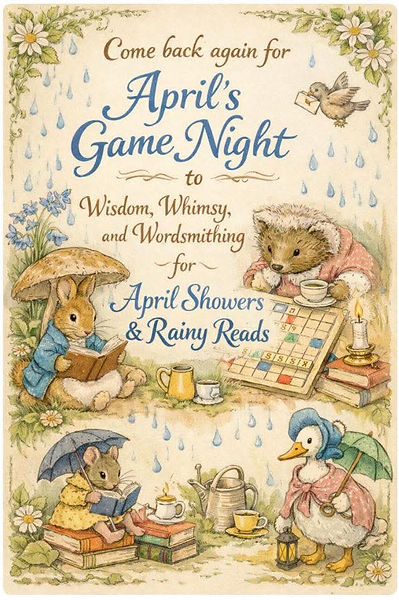 I created a super cool event that meets on Wednesday once a month called Game Night. April's Game Night will be in Amy Walsh's group, Wisdom, Whimsy, and Wordsmithing on the 29th from 4pm to 6pm. This year, 2026, we implemented a brand new reading challenge. The winner receives a $25 Amazon gift card! Contact me for more info as there's plenty of time for a chance to win the prize for reading! Join us each Wednesday for a fabulous time of virtual food, fun, and fellowship. Authors, if interested in participating, contact me. π₯³