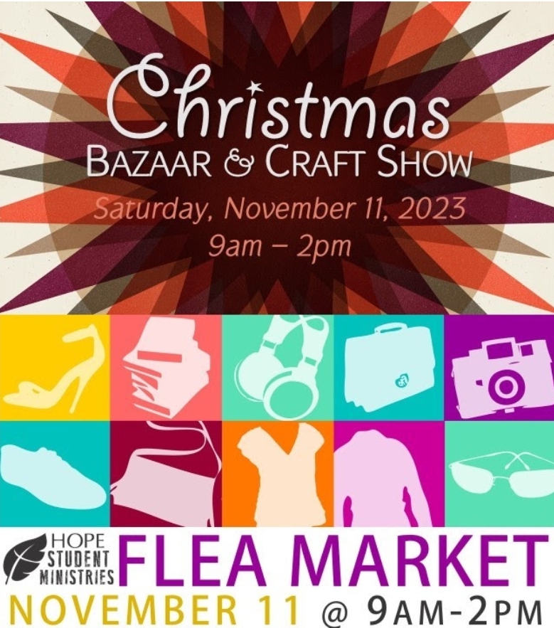Come find a treasure for the holidays, or spend a fun day walking around and admiring some local crafts, art and products from 40+ vendors. There will also be food & desserts available to purchase, and donāt forget about the awesome Hope Student Ministriesā FLEA MARKET.